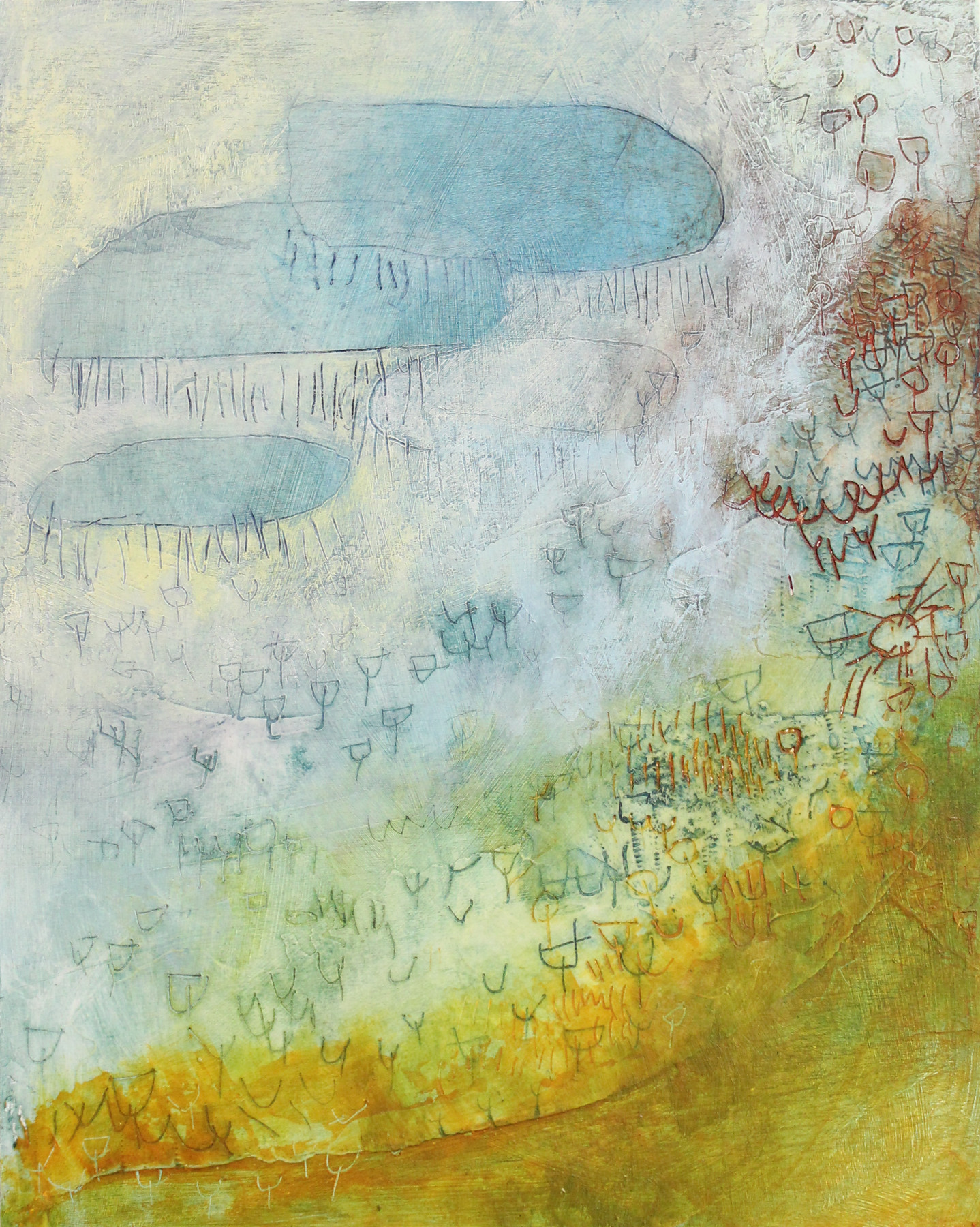acrylic and mixed media on wood,16×20″